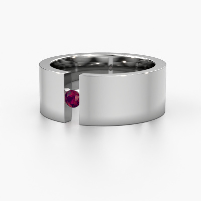 A truly stylish 14 Carat design wedding ring! This exquisite ladies wedding ring, as shown above, is set with round rhodolite. Our goldsmiths make each white gold wedding ring by hand in our own artisan studio and because of that, the rhodolite are set with the utmost precision. This causes light to reflect evenly from every angle of the rhodolite. The width of this design WH0146L18BP wedding ring is ±0.31 in (8 mm) and the finish is shiny. Choosing a wedding ring is not done on a whim. In the end, you want a ring that completely matches your style and preferences. A reflection of your love and relationship. A ring to last a lifetime. A symbol of all that unites you. Creating your dream ring is what gets us excited. This is artfully done by hand in our own crafting studio, so we can create your ring to perfection. The most rewarding job in the world!By the way, you can be inspired by this wedding ring and have it further adjusted to your taste. Do you prefer a smaller band or a wider one? Do you prefer a shiny ring or a matte one? Anything is possible. Also, if you have an idea of your own for extraordinary wedding rings, or if you have seen a beautiful set somewhere else that you really like and would like to have adjusted to your personal taste: no problem! don't hesitate to contact us. Our designers will gladly discuss your possibilities with you!After receiving your order, our goldsmiths will start the creative process of making your wedding rings. We don't keep stock. This is advantageous because these costs will not be passed on to you. Therefore, our quality wedding rings are always priced 30 percent lower than those of other jewelers.To make it easier for you, we offer a 30 day return policy. Check our terms and conditions.
