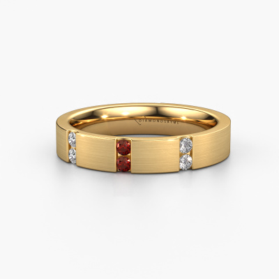 This modern ladies wedding ring is a stunning, contemporary wedding ring which truly symbolizes your unique love! Perfectly suited for men with a contemporary style. Simply customize the ring to your liking. Our goldsmith would take on any challenge of creating a perfect ring and will work on your ring, designed by you, in our own artisan studio. He will carefully and passionately create your WH2133L14BM wedding ring by hand whilst using the most modern techniques, combined with pure craftsmanship. And this results in a unique, contemporary ring! This modern WH2133L14BM wedding ring is set with round garnet, is ±0.16 in (4 mm) wide and has a mat/shiny finish. You can choose the combination of precious metals of your preference in our online tool. Anything goes! It is wise to browse through the characteristics of each different precious metal. For example, gold and silver are softer metals. Carat is determined by the amount of added extra metals. If the goldsmith doesn't add a lot, carat is higher and the wedding ring will be softer. If he adds more metals, the jewel has a lower amount of carat. A softer precious metal can still be used for your modern wedding ring! If you prefer a precious metal which will last a lifetime, we recommend platinum. This is the most solid and durable metal our goldsmith uses.Do you have specific wishes regarding your wedding ring, but are you having difficulties finding the design on our website? The be sure to contact our designers! For instance, we can make the band smaller or wider. Do you prefer a matte finish? We can do that! Engravings are a great way of personalizing your rings, and applicable on most designs. Or, if you have an idea of your own for your extraordinary wedding rings, contact us! Our designers are up for the challenge of designing the ring of your dreams!Because we design our wedding rings ourselves, and deliver it directly to you, we can offer you wedding rings at a price you won't find anywhere else. Our rings are made to order, which helps prevent excess supplies, so we can make you a great price offer.To make it easier for you, we offer a 30 day return policy. Check our terms and conditions.
