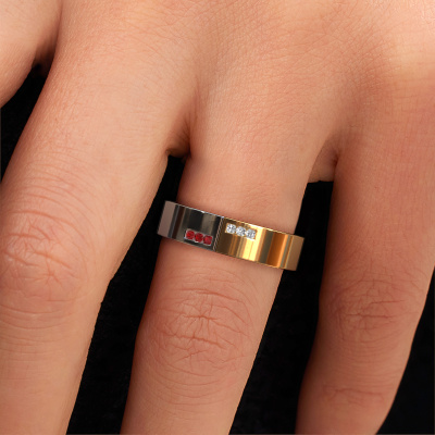 This modern ladies wedding ring is a stunning, contemporary wedding ring which truly symbolizes your unique love! Perfectly suited for men with a contemporary style. Simply customize the ring to your liking. Our goldsmith would take on any challenge of creating a perfect ring and will work on your ring, designed by you, in our own artisan studio. He will carefully and passionately create your WH1106L15AP ±5x1.7 mm wedding ring by hand whilst using the most modern techniques, combined with pure craftsmanship. And this results in a unique, contemporary ring! This modern WH1106L15AP wedding ring is set with round ruby is ±0.20 in (5 mm) wide and has a shiny finish. You can choose the combination of precious metals of your preference in our online tool. Anything goes! It is wise to browse through the characteristics of each different precious metal. For example, gold and silver are softer metals. Carat is determined by the amount of added extra metals. If the goldsmith doesn't add a lot, carat is higher and the wedding ring will be softer. If he adds more metals, the jewel has a lower amount of carat. A softer precious metal can still be used for your modern wedding ring! If you prefer a precious metal which will last a lifetime, we recommend platinum. This is the most solid and durable metal our goldsmith uses.Do you have specific wishes regarding your wedding ring, but are you having difficulties finding the design on our website? The be sure to contact our designers! For instance, we can make the band smaller or wider. Do you prefer a matte finish? We can do that! Engravings are a great way of personalizing your rings, and applicable on most designs. Or, if you have an idea of your own for your extraordinary wedding rings, contact us! Our designers are up for the challenge of designing the ring of your dreams!After receiving your order, our goldsmiths will start the creative process of making your wedding rings in our own crafting studio. We don't keep stock. This is advantageous because these costs will not be passed on to you. Therefore, we can offer the finest quality jewelry at exceptionally low prices.To make it easier for you, we offer a 30 day return policy. Check our terms and conditions.