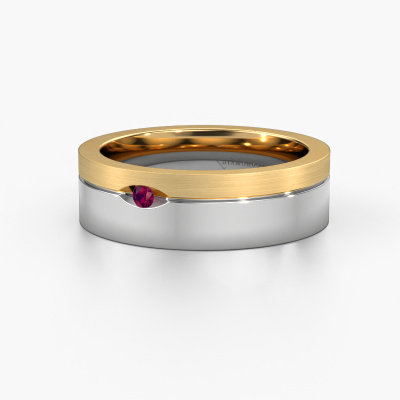 A truly stylish 14 Carat modern wedding ring! This exquisite ladies wedding ring, as shown above, is set with round rhodolite. Our goldsmiths make each white gold wedding ring by hand in our own artisan studio and because of that, the rhodolite are set with the utmost precision. This causes light to reflect evenly from every angle of the rhodolite. The width of this modern WH0329L16B wedding ring is ±0.24 in (6 mm) and the finish is mat/shiny. Simply customize your gemstones and colors with our online tool. Our jewel designers will make a 3D drawing of your design, so you can see the result. Our goldsmiths will subsequently make your wedding ring by hand, according ancient craftsmanship. Our goal is to make the wedding ring you have in mind. A unique wedding ring to match your style completely!This wedding ring can also serve as a source of inspiration. Would you like the ring to have a matte or shiny finish (at no additional cost), or would you prefer it to be wider or narrower? Anything is possible. Because there are countless variations, we can’t show everything on our website. Do you have an idea for beautiful wedding rings, or have you seen a stunning set of wedding rings elsewhere? Feel free to contact us; our designers are ready to assist you.Because we design and deliver our own wedding rings, we can offer you wedding rings at a price you won't find anywhere else. A ring is made to order, which helps prevent excess supplies, so we can make you a great price offer.To make it easier for you, we offer a 30 day return policy. Check our terms and conditions.