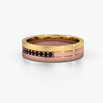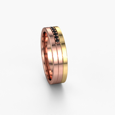 An extraordinary memoire rose gold ladies wedding ring! The combination of the three different precious metals represents your unique love. Isn't that wonderful? Our goldsmith will create your ring in our own crafting studio. With a unique combination of pure craftsmanship of goldsmiths and the most modern techniques, we are able to customize your modern three tone wedding ring to perfection. This 3 color WH0413L15AP wedding ring set with round black diamond is ±0.20 in (5 mm) wide and has a shiny finish. Simply customize your gemstones and colors with our online tool. Our jewel designers will make a 3D drawing of your design, so you can see the result. Our goldsmiths will subsequently make your wedding ring by hand, according ancient craftsmanship. Our goal is to make the wedding ring you have in mind. A unique wedding ring to match your style completely!Do you have special preferences regarding your wedding ring? For instance, a smaller or a wider band? Or perhaps a shiny or a matte ring? There are numerous variations possible. You can always discuss the possibilities with our jewelry designers. If you have certain wedding rings in mind, our designers will gladly help by drawing the rings of your dreams. Be sure to contact us!By combining our modern techniques with ancient crafting, we can design and customize the finest quality jewels with the utmost care for you at the best price. Our wedding rings are always priced 30% lower than those of other jewelers. We make wedding rings to order so we don't have to maintain a large stock.To make it easier for you, we offer a 30 day return policy. Check our terms and conditions.