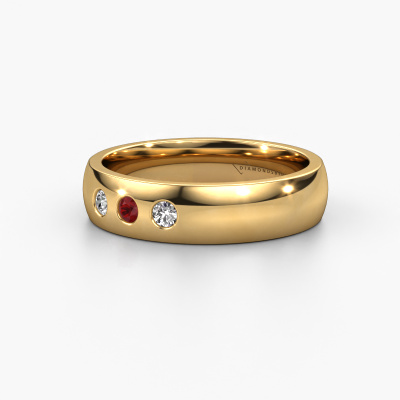 This modern shiny ladies wedding ring with court profile is an extraordinary ring to memorialize your love. A timeless wedding ring set with carefully selected ruby. In this example, the gold WH0114L25BP wedding ring is set with round ruby 2.2 mm. Our goldsmiths use the latest modern techniques, combined with ancient craftsmanship and they will make your ring in our own artisan studio. Resulting in a unique, handmade ±5x2 mm wedding ring, which was created to perfection, and matches your style flawlessly. After designing your ring, our jewel designer will start working on it. He will make a graphic 3D design of your wedding ring. This can also be used to make a dummy ring. Simply order a dummy ring and see for yourself how your ring will turn out. Subsequently, our expert goldsmith will create your ring in our own artisan studio. We use eco-friendly gold, so you get a ring, we are proud of, which looks good inside and out. You can also send us your own gold. Because we create your ring by hand, we can use your own gold. Our goal is to create an exquisite sparkling wedding ring just as envisioned it!Do you have special preferences regarding your wedding ring? For instance, a smaller or a wider band? Or perhaps a shiny or a matte ring? There are numerous variations possible. You can always discuss the possibilities with our jewelry designers. If you have certain wedding rings in mind, our designers will gladly help by drawing the rings of your dreams. Be sure to contact us!After receiving your order, our goldsmiths will start the creative process of making your wedding rings in our own crafting studio. We don't keep stock. This is advantageous because these costs will not be passed on to you. Therefore, we can offer the finest quality jewelry at exceptionally low prices.To make it easier for you, we offer a 30 day return policy. Check our terms and conditions.