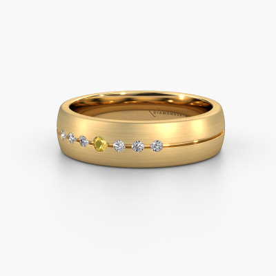 This modern ladies wedding ring is a stunning, contemporary wedding ring which truly symbolizes your unique love! Perfectly suited for men with a contemporary style. Simply customize the ring to your liking. Our goldsmith would take on any challenge of creating a perfect ring and will work on your ring, designed by you, in our own artisan studio. He will carefully and passionately create your WH0162L25A wedding ring by hand whilst using the most modern techniques, combined with pure craftsmanship. And this results in a unique, contemporary ring! This modern WH0162L25A wedding ring is set with round yellow sapphire, is ±0.22 in (5,5 mm) wide and has a matte finish. After ordering your wedding ring, our goldsmith will start creating your wedding ring immediately. Did you know we use the latest modern techniques, combined with ancient craftsmanship? This helps to create a 3D design of your jewel. You can order a dummy ring, if you please. This way you can check if the wedding ring meets your standard. Then, our goldsmith, who strives for perfection, will create your ring in our own artisan studio completely by hand. We feel passionate creating a unique ring each time. One which is finished to perfection. In the end, you get a wedding ring which matches your wishes.Do you have specific wishes regarding your wedding ring, but are you having difficulties finding the design on our website? The be sure to contact our designers! For instance, we can make the band smaller or wider. Do you prefer a matte finish? We can do that! Engravings are a great way of personalizing your rings, and applicable on most designs. Or, if you have an idea of your own for your extraordinary wedding rings, contact us! Our designers are up for the challenge of designing the ring of your dreams!After receiving your order, our goldsmiths will start the creative process of making your wedding rings. We don't keep stock. This is advantageous because these costs will not be passed on to you. Therefore, our quality wedding rings are always priced 30 percent lower than those of other jewelers.To make it easier for you, we offer a 30 day return policy. Check our terms and conditions.