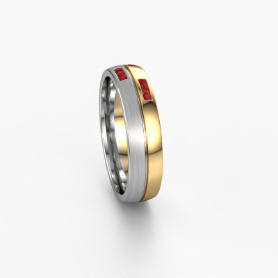 A unique two-tone gold ladies wedding ring, designed by you, and then artfully crafted by our goldsmith in our own artisan studio! A beautiful symbol, reflecting your love, which you carry with you for a lifetime! Each ring we offer is artfully forged by hand in our own crafting studio. This makes it possible for us to create you a ring which is customized to your liking, completely mat/shiny your style. This fashionable WH0206L25APM wedding ring is set with ruby, is ±0.20 in (5 mm) wide and has a mat/shiny finish. After ordering your wedding ring, our goldsmith will start creating your wedding ring immediately. Did you know we use the latest modern techniques, combined with ancient craftsmanship? This helps to create a 3D design of your jewel. You can order a dummy ring, if you please. This way you can check if the wedding ring meets your standard. Then, our goldsmith, who strives for perfection, will create your ring in our own artisan studio completely by hand. We feel passionate creating a unique ring each time. One which is finished to perfection. In the end, you get a wedding ring which matches your wishes.Be inspired by our designs, and adjust this wedding ring to your own personal taste: wider or smaller, shiny or matte? No problem! Even if you have ideas of your own for special wedding rings, our jewelry designers are lined up to help you design the ring of your dreams. don't hesitate to contact us!After receiving your order, our goldsmiths will passionately start the creative process of making your wedding rings in our own artisan studio. Because we do not maintain a large stockpile, we can offer our jewelry at a lower price than other jewelers. Our pricing is proof of that! We offer top quality jewels at lowest price, guaranteed.To make it easier for you, we offer a 30 day return policy. Check our terms and conditions.