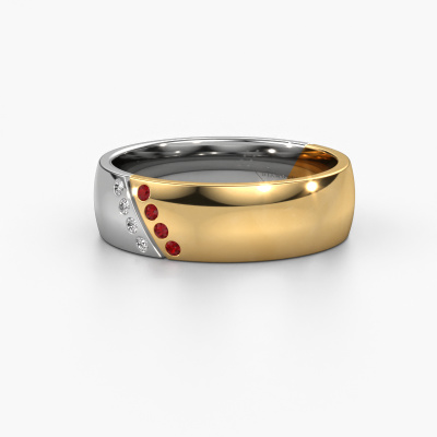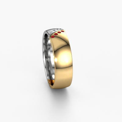 A unique two-tone white gold ladies wedding ring, designed by you, and then artfully crafted by our goldsmith in our own artisan studio! A beautiful symbol, reflecting your love, which you carry with you for a lifetime! Each ring we offer is artfully forged by hand in our own crafting studio. This makes it possible for us to create you a ring which is customized to your liking, completely shiny your style. This modern WH1201L26AP8 wedding ring is set with ruby, is ±0.24 in (6 mm) wide and has a shiny finish. After ordering your wedding ring, our goldsmith will start creating your wedding ring immediately. Did you know we use the latest modern techniques, combined with ancient craftsmanship? This helps to create a 3D design of your jewel. You can order a dummy ring, if you please. This way you can check if the wedding ring meets your standard. Then, our goldsmith, who strives for perfection, will create your ring in our own artisan studio completely by hand. We feel passionate creating a unique ring each time. One which is finished to perfection. In the end, you get a wedding ring which matches your wishes.This wedding ring can also serve as a source of inspiration. Would you like the ring to have a matte or shiny finish (at no additional cost), or would you prefer it to be wider or narrower? Anything is possible. Because there are countless variations, we can’t show everything on our website. Do you have an idea for beautiful wedding rings, or have you seen a stunning set of wedding rings elsewhere? Feel free to contact us; our designers are ready to assist you.Because we design and deliver our own wedding rings, we can offer you wedding rings at a price you won't find anywhere else. A ring is made to order, which helps prevent excess supplies, so we can make you a great price offer.To make it easier for you, we offer a 30 day return policy. Check our terms and conditions.