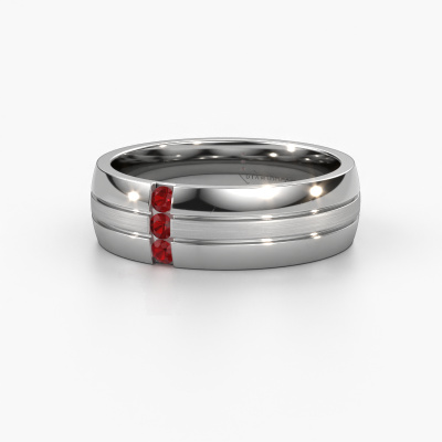 What a perfect combination of two different precious metals. They seem to reinforce each other in the modern design of this ring! Our goldsmith would be honored to create a unique ring for you, customized to your liking. Each ladies wedding ring we offer is artfully crafted by hand in our own artisan studio. That makes it possible for us to turn modern into reality and helps create your own personal ring, customized to your style. This modern WH0426L26A ladies wedding ring is set with round ruby, is ±0.24 in (6 mm) wide and has a mat/shiny finish. The jewel designer, member of a specialized team, will make a graphic 3D design of your wedding ring. If it pleases you, you can also order a ring dummy so you can try it on and see your ring before creation. Subsequently, our goldsmith will create your unique wedding ring with great care in our own crafting studio. A meticulous job, because both creating as well as finishing your ring requires a keen eye. And that is what makes our craft special. Your unique wedding ring is the result of true passionate craftsmanship!Do you have special preferences regarding your wedding ring? For instance, a smaller or a wider band? Or perhaps a shiny or a matte ring? There are numerous variations possible. You can always discuss the possibilities with our jewelry designers. If you have certain wedding rings in mind, our designers will gladly help by drawing the rings of your dreams. Be sure to contact us!After receiving your order, our goldsmiths will passionately start the creative process of making your wedding rings in our own artisan studio. Because we do not maintain a large stockpile, we can offer our jewelry at a lower price than other jewelers. Our pricing is proof of that! We offer top quality jewels at lowest price, guaranteed.To make it easier for you, we offer a 30 day return policy. Check our terms and conditions.
