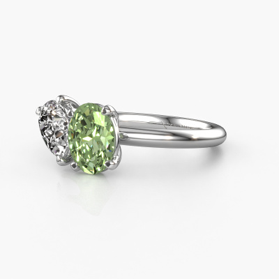 This 14 Carat white gold ring is called Toi et Moi OVL-PER and is set with green lab grown diamond. Do you keep up with the latest fashion trends? Do you want a unique engagement ring that matches your lifestyle? This charming engagement ring is an extraordinary ring which can be custom made to fit your or her personal style. This fashionable white gold engagement ring is set with green lab grown diamond. Our green lab grown diamondd are carefully selected for this specific ring in order to create the best effect. Our expert goldsmith will create your ring in our own artisan studio where the green lab grown diamond will be set with great care. The ring will then be polished to perfection. Nothing but the best for the love of your life! This jewel is made just for you by our master goldsmiths in our own studio.By using our modern techniques, we can design and customize the finest quality jewels with the utmost care for you. Our engagement rings are always priced 30 percent lower than other jewelers. We make engagement rings to order so we don't have to maintain a large stock. If you have a certain budget, we are more than happy to advice you accordingly.Do you have a specific ring in mind? One you came across somewhere. Please feel free to tell us your wishes and we will turn your design into a unique engagement ring. You can follow the development of your ring design because we use 3D drawings. This gives you a realistic preview of your design. We will gladly send you a non-binding offer, based on a fair price/ quality ratio. It will amaze you.To make it easier for you, we offer a 30 day return policy. Check our terms and conditions.