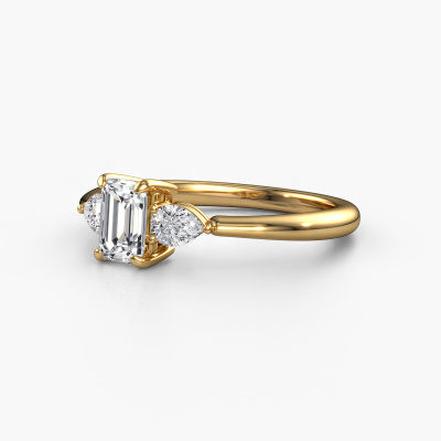 This 14 Carat gold ring is called Chanou EME and is set with 1.120 crt lab-grown diamond. For you, there is only one person in your life who stands out in a crowd. Only one that makes your heart skip a beat. A true gem! She, above all others, deserves a special gift. A unique customized jewel made in her honor. We believe this ring is perfect for your special moment. Each detail of this exclusive gold 3-stone engagement ring is selected by hand, crafted and polished by our expert goldsmith in our own artisan studio. We strive to achieve the perfect design and composition of the ring, so it enhances the unique features of our lab grown diamonds, and lets them shine even brighter. It takes a lot of precision to make but in the end it pays off because of the sheer beauty of the ring. And that is our main goal. It's what gets us excited. The great thing about our online tool is, that you can design your own jewelry into a unique, personalized piece. This unique tasteful engagement ring is created with the precious metal combination of gold and gold. But of course you are completely free to select other colors. Each piece of jewelry is made just for you by our master goldsmiths in our own studio.By using a combination of the latest modern techniques, combined with ancient crafting, we can make all our engagement rings in our own studio. Each jewel is made to order. This is advantageous because we can offer you a price you won't find anywhere else.Our designers and goldsmiths work together each day, creating new jewels. Perhaps you have found a nice unique engagement ring somewhere, which can be used to customize your unique ring. Please feel free to contact us. We will make you an offer, based on a fair price/ quality ratio, which will amaze you.To make it easier for you, we offer a 30 day return policy. Check our terms and conditions.