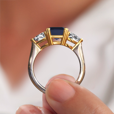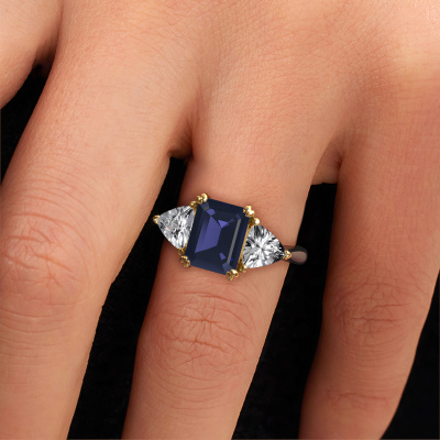 This 14 Carat white gold ring is called Paula and is set with 9x7 mm sapphire. For you, there is only one person in your life who stands out in a crowd. Only one that makes your heart skip a beat. A true gem! She, above all others, deserves a special gift. A unique customized jewel made in her honor. We believe this ring is perfect for your special moment. Each detail of this exclusive white gold 3-stone engagement ring is selected by hand, crafted and polished by our expert goldsmith in our own artisan studio. We strive to achieve the perfect design and composition of the ring, so it enhances the unique features of our sapphire, and lets them shine even brighter. It takes a lot of precision to make but in the end it pays off because of the sheer beauty of the ring. And that is our main goal. It's what gets us excited. The great thing about our online tool is, that you can design your own jewelry into a unique, personalized piece. This unique special engagement ring is created with the precious metal combination of white gold and white gold. But of course you are completely free to select other colors. Each piece of jewelry is made just for you by our master goldsmiths in our own studio.By using our modern techniques, we can design and customize the finest quality jewels with the utmost care for you. Our engagement rings are always priced 30 percent lower than other jewelers. We make engagement rings to order so we don't have to maintain a large stock. If you have a certain budget, we are more than happy to advice you accordingly.Our team adds new designs to our online collection daily. Our designers and goldsmiths work together in creating the best design. We strive to offer a diverse collection of jewels. Perhaps you have a specific jewel design in mind. One you came across somewhere. Please contact us for a free consultation. We will make you an offer, based on a fair price/ quality ratio, that will baffle you.To make it easier for you, we offer a 30 day return policy. Check our terms and conditions.