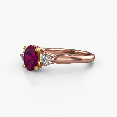 This 14 Carat rose gold ring is called Laurian OVL and is set with rhodolite. Do you keep up with the latest fashion trends? Do you want a unique engagement ring that matches your lifestyle? This fine engagement ring is an extraordinary ring which can be custom made to fit your or her personal style. This fantasy rose gold engagement ring is set with rhodolite. Our rhodolite are carefully selected for this specific ring in order to create the best effect. Our expert goldsmith will create your ring in our own artisan studio where the rhodolite will be set with great care. The ring will then be polished to perfection. Nothing but the best for the love of your life! This jewel is unique in every way! Simply customize to your likingAfter receiving your order, our goldsmiths will passionately start the creative process of making your engagement ring in our own studio. Because we don't have a big stockpile, these costs will not be passed on to you. Our pricing is proof of that! We offer top quality jewels at lowest price, guaranteed.Do you have a specific ring in mind? One you came across somewhere. Please feel free to tell us your wishes and we will turn your design into a unique engagement ring. You can follow the development of your ring design because we use 3D drawings. This gives you a realistic preview of your design. We will gladly send you a non-binding offer, based on a fair price/ quality ratio. It will amaze you.To make it easier for you, we offer a 30 day return policy. Check our terms and conditions.