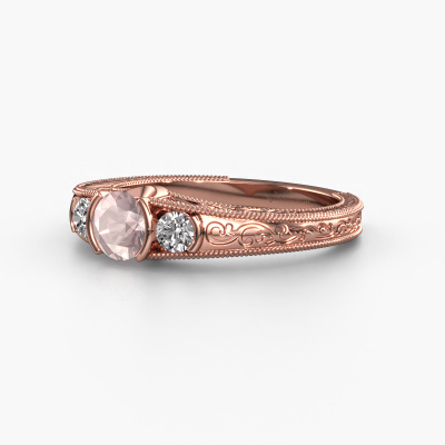 This 14 Carat rose gold ring is called Tasia and is set with 5 mm morganite champagne. Is your girlfriend hooked on vintage? Then this rose gold filigree promise ring will surely match her style perfectly. A trendy ring with just a hint of vintage adornment. A truly stunning, romantic design! Especially when you customize your ring to your own liking. This vintage 3-stone promise ring is set with stunning morganite champagne. As you can see, you are the boss in selecting a gemstone which matches the style of your girlfriend best. Each gemstone is carefully selected by our merchants whom are spread throughout the world. Nothing but the best gems for our expert goldsmith. After all, it is his crowning glory! Each jewel is made with passion and love by one of our master goldsmiths.By using a combination of the latest modern techniques, combined with ancient crafting, we can make all our promise ring in our own studio. Each jewel is made to order. This is advantageous because we can offer you a price you won't find anywhere else.Our team adds new designs to our online collection daily. Our designers and goldsmiths work together in creating the best design. We strive to offer a diverse collection of jewels. Perhaps you have a specific jewel design in mind. One you came across somewhere. Please contact us for a free consultation. We will make you an offer, based on a fair price/ quality ratio, that will baffle you.To make it easier for you, we offer a 30 day return policy. Check our terms and conditions.