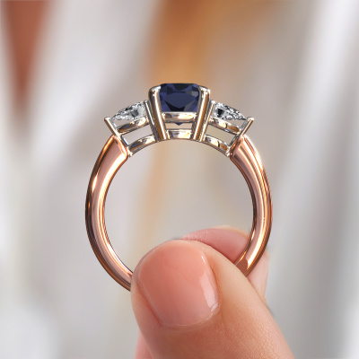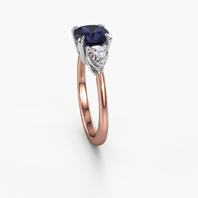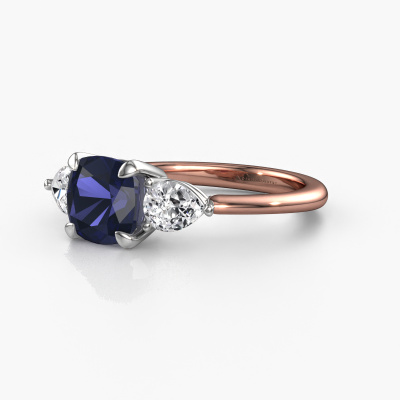 This 14 Carat rose gold ring is called Chanou CUS and is set with 7 mm sapphire. This exclusive rose gold 3-stone engagement ring is a true work of art! The ornaments are crafted with a lot of patience and great passion. In order to create this ring with great precision, this craft requires a keen eye and skillful hand. A challenge which ignites a fire in our expert goldsmith. The exquisite sapphire are set in a special way so they stand out even more. This gives the ring an even more glamorous appearance. The pretty engagement ring is actually unique on its own because of the gemstones which we carefully select especially for this ring. On top of that you select the precious metals which will be used to create a unique ring for the most extraordinary woman in your life! This jewel is made to shine bright around your finger. Each jewel is hand made with love by our goldsmiths.After receiving your order, our goldsmiths will start the creative process of making your Chanou CUS engagement ring. We don't keep stock. This is advantageous because these costs will not be passed on to you. Therefore, we can offer jewelry at exceptionally low prices.Our designers and goldsmiths work together each day, creating new jewels. Perhaps you have found a nice exclusive engagement ring somewhere, which can be used to customize your unique ring. Please feel free to contact us. We will make you an offer, based on a fair price/ quality ratio, which will amaze you.To make it easier for you, we offer a 30 day return policy. Check our terms and conditions.
