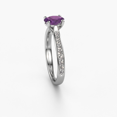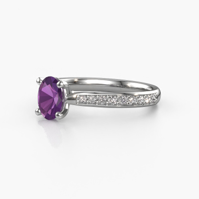 The ring shown above is called the Mignon ovl 2, we call this a solitaire ring because it contains a single gemstone. The engagement ring is made in platinum and has a oval amethyst of 7x5 mm. The cool thing about our configurator is that you can compile your own piece of jewelry, into a completely personalized one. This solitaire ring is crafted in the precious metals platinum with platinum, but of course you are free to pick your own colors. Each piece of jewelry is made with passion and love by one of our master goldsmiths.The solitaire ring is a special type of engagement ring. Its open prong setting allows light to strike the gemstone from various angles. This chic engagement ring is a stunning eye-catcher because of the high positioning of the gemstone. In order for you to commemorate your proposal with a unique ring, we carefully adorn this solitaire ring by hand. The love of your life deserves nothing but the best. After receiving your order, our goldsmiths will passionately start the creative process of making your engagement ring in our own studio. Because we don't have a big stockpile, these costs will not be passed on to you. Our pricing is proof of that! We offer top quality jewels at lowest price, guaranteed.Our team adds new designs to our online collection daily. Our designers and goldsmiths work together in creating the best design. We strive to offer a diverse collection of jewels. Perhaps you have a specific jewel design in mind. One you came across somewhere. Please contact us for a free consultation. We will make you an offer, based on a fair price/ quality ratio, that will baffle you.To make it easier for you, we offer a 30 day return policy. Check our terms and conditions.