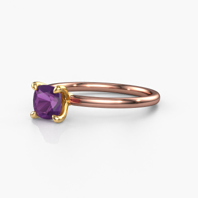 The ring shown above is called the Crystal CUS 1, we call this a solitaire ring because it contains a single gemstone. The engagement ring is made in 14 Carat rose gold and has a cushion amethyst of 5.5 mm. The cool thing about our configurator is that you can compile your own piece of jewelry, into a completely personalized one. This solitaire ring is crafted in the precious metals rose gold with gold, but of course you are free to pick your own colors. Each piece of jewelry is made with passion and love by one of our master goldsmiths.The solitaire ring is a special type of engagement ring. Its open prong setting allows light to strike the gemstone from various angles. This contemporary engagement ring is a stunning eye-catcher because of the high positioning of the gemstone. In order for you to commemorate your proposal with a unique ring, we carefully adorn this solitaire ring by hand. The love of your life deserves nothing but the best. Because we design and deliver our own rings, we can offer you a engagement ring at a price you won't find anywhere else. A ring is made to order, which helps prevent excess supplies, so we can make you a great price offer. We understand it feels risky, buying your engagement ring online, but we will gladly assist in the designing process, taking your budget into consideration.Our team adds new designs to our online collection daily. Our designers and goldsmiths work together in creating the best design. We strive to offer a diverse collection of jewels. Perhaps you have a specific jewel design in mind. One you came across somewhere. Please contact us for a free consultation. We will make you an offer, based on a fair price/ quality ratio, that will baffle you.To make it easier for you, we offer a 30 day return policy. Check our terms and conditions.