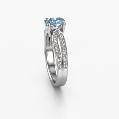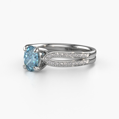 The ring shown above is called the Antonia ovl 2. We call this type of ring a pavé solitaire ring because it has one center gemstone and a band that is also pave set with gemstones. The platinum engagement ring is set with a oval 7x5 mm blue lab grown diamond center stone and the band is pave set with diamond gemstones. Each jewel is unique in every way! Simply customize to your liking,This contemporary platinum pavé solitaire engagement ring has an exquisite oval blue lab grown diamond center stone. To further accentuate the center stone, the band is fully set with more diamonds. Its open prong setting allows light to strike the blue lab grown diamond from various angles and this adds sparkle to your blue lab grown diamond ring. The photo shown above depicts the goldsmith's carefully handcrafted details of the ring. The high positioning of the center stone is truly eye-catching. The perfect engagement ring for the crown jewel of your life! By using a combination of the latest modern techniques, combined with ancient crafting, we can make all our engagement rings in our own studio. Each jewel is made to order. This is advantageous because we can offer you a price you won't find anywhere else.Our team adds new designs to our online collection daily. Our designers and goldsmiths work together in creating the best design. We strive to offer a diverse collection of jewels. Perhaps you have a specific jewel design in mind. One you came across somewhere. Please contact us for a free consultation. We will make you an offer, based on a fair price/ quality ratio, that will baffle you.To make it easier for you, we offer a 30 day return policy. Check our terms and conditions.