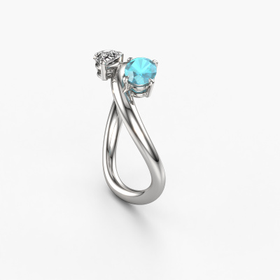 This 14 Carat white gold ring is called Chloe OVL-PER and is set with blue topaz. How would you describe the style of the love of your life? Does she have a unique sense of style? This stunning twist white gold engagement ring can be custom made to your own or her liking. Our blue topaz gemstones have been carefully selected because we believe your unique engagement ring must be adorned with nothing but the most beautiful gemstone. Don't you agree? This jewel is created to add sparkle to your finger, each jewel is lovingly made by hand by our goldsmiths.Because we design and deliver our own rings, we can offer you a engagement ring at a price you won't find anywhere else. A ring is made to order, which helps prevent excess supplies, so we can make you a great price offer. We understand it feels risky, buying your engagement ring online, but we will gladly assist in the designing process, taking your budget into consideration.Do you have a specific ring in mind? One you came across somewhere. Please feel free to tell us your wishes and we will turn your design into a unique engagement ring. You can follow the development of your ring design because we use 3D drawings. This gives you a realistic preview of your design. We will gladly send you a non-binding offer, based on a fair price/ quality ratio. It will amaze you.To make it easier for you, we offer a 30 day return policy. Check our terms and conditions.