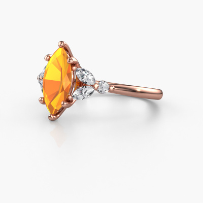 The ring shown above is called the Megan MRQ. We call this type of ring a pavé solitaire ring because it has one center gemstone and a band that is also pave set with gemstones. This engagement ring is made in 14 Carat rose gold set with a 11x5.5 mm marquise citrin, and pave set lab grown diamonds at the sides. Each piece of jewelry is made with passion and love by one of our master goldsmiths.This fantasy rose gold pavé solitaire engagement ring has an exquisite marquise citrin center stone. To further accentuate the center stone, the band is set full with more lab grown diamonds. Its open prong setting allows light to strike the citrin from various angles and this adds sparkle to your citrin ring. The photo shown above depicts the goldsmith's carefully handcrafted details of the ring. The high positioning of the center stone is truly eye-catching. The perfect engagement ring for the crown jewel of your life![bestp1v_long]Have you found a specific engagement ring somewhere which you would like to give to your loved one? Please feel free to express your wishes to our jewel designers because we would be honored to turn your design into a fantasy engagement ring. You can follow the development of your ring design because we use 3D drawings. This gives you a realistic preview of how your design will look. You can also preorder a dummy. A dummy is a plastic ring, which can be shaped according your ring design. You can try it on and check if its width and size are suitable for you. We will gladly send you a non-binding offer, based on a fair price/ quality ratio. It will amaze you, considering the quality of the ring and gemstones.To make it easier for you, we offer a 30 day return policy. Check our terms and conditions.
