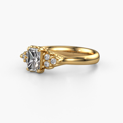 This 14 Carat gold ring is called Myrna RAD and is set with 0.758 crt diamond. Are you looking for a contemporary gold engagement ring which you can customize to your own liking? This contemporary engagement ring is set with diamond which is carefully selected for this specific ring in order to create the best effect. Our expert goldsmith will create your ring in our own crafting studio, where the diamond will be set with great care. The ring will then be polished till it shines perfectly. Nothing but the best for the love of your life! The great thing about our online tool is, that you can compile your own jewelry into a unique, personalized piece. Each piece of jewelry is made with passion and love by one of our master goldsmiths.Are you on a budget? Please feel free to contact us, so we can go discuss your options. We offer our engagement rings at guaranteed best price, because we make them to order. You won't find such a price anywhere else!Have you found a specific engagement ring somewhere which you would like to give to your loved one? Please feel free to express your wishes to our jewel designers because we would be honored to turn your design into a contemporary engagement ring. You can follow the development of your ring design because we use 3D drawings. This gives you a realistic preview of how your design will look. You can also preorder a dummy. A dummy is a plastic ring, which can be shaped according your ring design. You can try it on and check if its width and size are suitable for you. We will gladly send you a non-binding offer, based on a fair price/ quality ratio. It will amaze you, considering the quality of the ring and gemstones.To make it easier for you, we offer a 30 day return policy. Check our terms and conditions.