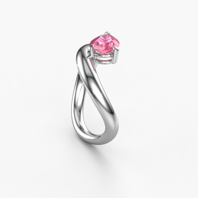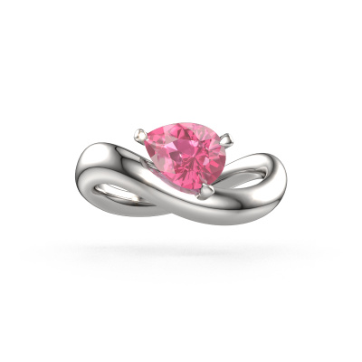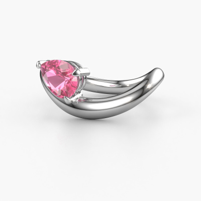 The ring shown above is called the Chloe PER. We call this a solitaire ring because it contains a single gemstone. The engagement ring is made in 14 Carat white gold and has a pear pink sapphire of 8x6 mm. This extraordinary design white gold
