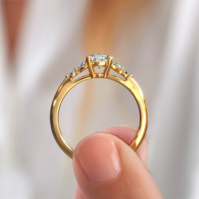 This 14 Carat gold ring is called Megan CSH and is set with diamond. How would you describe the style of the love of your life? Does she have a unique sense of style? This stunning outstanding gold engagement ring can be custom made to your own or her liking. Our diamonds gemstones have been carefully selected because we believe your exclusive engagement ring must be adorned with nothing but the most beautiful gemstone. Don't you agree? This jewel is made just for you, with attention to detail and design.By using a combination of the latest modern techniques, combined with ancient crafting, we can make all our engagement rings in our own studio. Each jewel is made to order. This is advantageous because we can offer you a price you won't find anywhere else.Different styles of new rings are made daily by our team. Perhaps you have found a pavé solitaire engagement ring somewhere. One you would like to give to your loved one. Please feel free to share your thoughts and design with our jewel designers. We would love to turn your design into a exclusive engagement ring. You can follow the development of your ring design because we use very detailed 3D drawings. On top of that, you can order a dummy of the design. A dummy is a plastic ring, which can be shaped according your ring design. You can try it on and check if the engagement ring is up to standard. We will gladly send you a non-binding offer, based on a fair price/ quality ratio. The offer will baffle you, considering the quality of the ring and gemstones.To make it easier for you, we offer a 30 day return policy. Check our terms and conditions.