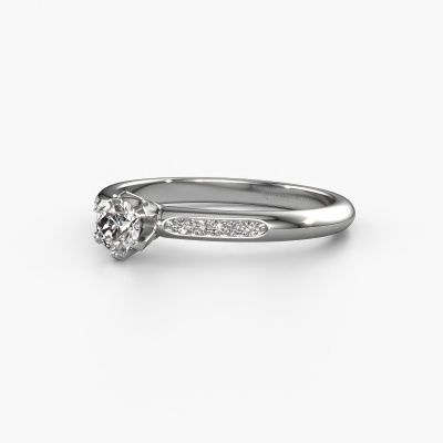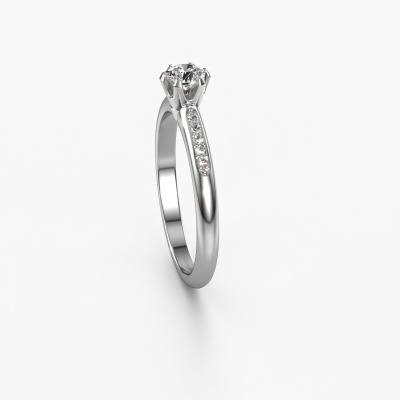 The ring shown above is called the Tiffy 2. We call this type of ring a pavé solitaire ring because it has one center gemstone and a band that is also pave set with gemstones. This engagement ring is made in platinum set with a 0.25 crt round diamond, and pave set diamonds at the sides. Each piece of jewelry is created to add sparkle to your finger, each jewel is lovingly made by hand by our goldsmiths.This traditional platinum pavé solitaire engagement ring has an exquisite round diamond center stone. To further accentuate the center stone, the band is set full with more diamonds. Its open prong setting allows light to strike the diamond from various angles and this adds sparkle to your diamond ring. The photo shown above depicts the goldsmith's carefully handcrafted details of the ring. The high positioning of the center stone is truly eye-catching. The perfect engagement ring for the crown jewel of your life!By using our modern techniques, we can design and customize the finest quality jewels with the utmost care for you. Our engagement rings are always priced 30 percent lower than other jewelers. We make engagement rings to order so we don't have to maintain a large stock. If you have a certain budget, we are more than happy to advice you accordingly.Our designers and goldsmiths work together each day, creating new jewels. Perhaps you have found a nice traditional engagement ring somewhere, which can be used to customize your unique ring. Please feel free to contact us. We will make you an offer, based on a fair price/ quality ratio, which will amaze you.To make it easier for you, we offer a 30 day return policy. Check our terms and conditions.