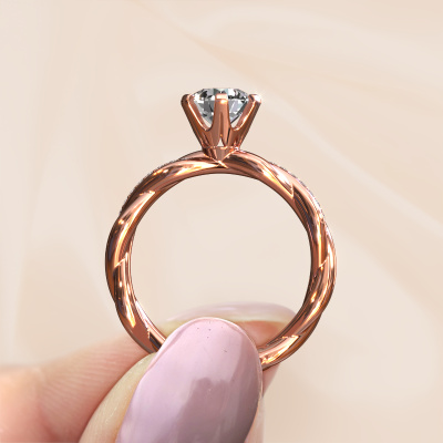 In your eyes, no one else compares to her. She is one in a million, unlike anyone else and pure? These qualities are emphasized perfectly by our fantasy rose gold solitaire diamond ring. This diamond is carefully selected by our keen artisan goldsmiths. It equals the unique qualities of the love of your life. There is no better way to memorialize your proposal than this symbol of true love. The ring shown above is called the Page, we call this a solitaire ring because it contains a single gemstone. The engagement ring is made in 14 Carat rose gold and has a round diamond of 1.00 crt. Each piece of jewelry is made with passion and love by one of our master goldsmiths.Are you on a budget? Please feel free to contact us, so we can go discuss your options. We offer our engagement rings at guaranteed best price, because we make them to order. You won't find such a price anywhere else!Do you have a specific ring in mind? One you came across somewhere. Please feel free to tell us your wishes and we will turn your design into a unique engagement ring. You can follow the development of your ring design because we use 3D drawings. This gives you a realistic preview of your design. We will gladly send you a non-binding offer, based on a fair price/ quality ratio. It will amaze you.To make it easier for you, we offer a 30 day return policy. Check our terms and conditions.