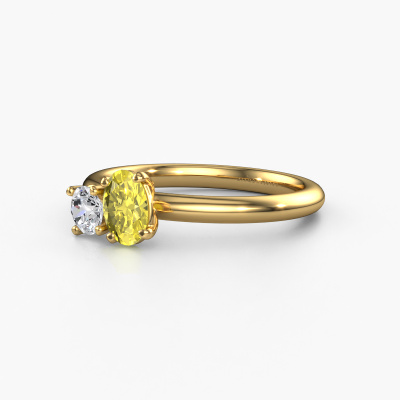 This 14 Carat gold ring is called Toi et Moi OVL-RND and is set with yellow lab grown diamond. Are you in the market for a unique gold engagement ring with a trendy appearance? Then this ring is perfect for you. Simply customize to your or her liking. This chic graceful engagement ring is set with exquisite yellow lab grown diamond. It has been carefully selected because your engagement ring must be adorned with nothing but the most beautiful gemstone. Our expert goldsmith will create your ring in our own studio where the yellow lab grown diamond will be set with great care. The ring will then be polished to perfection to give it that extra sparkle. The perfect ring for your significant other! Are you on a budget? Please feel free to contact us, so we can go discuss your options. We offer our engagement rings at guaranteed best price, because we make them to order. You won't find such a price anywhere else!Have you found a specific engagement ring somewhere which you would like to give to your loved one? Please feel free to express your wishes to our jewel designers because we would be honored to turn your design into a chic engagement ring. You can follow the development of your ring design because we use 3D drawings. This gives you a realistic preview of how your design will look. You can also preorder a dummy. A dummy is a plastic ring, which can be shaped according your ring design. You can try it on and check if its width and size are suitable for you. We will gladly send you a non-binding offer, based on a fair price/ quality ratio. It will amaze you, considering the quality of the ring and gemstones.To make it easier for you, we offer a 30 day return policy. Check our terms and conditions.
