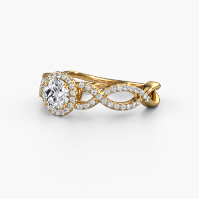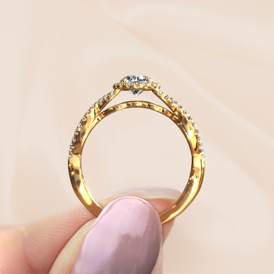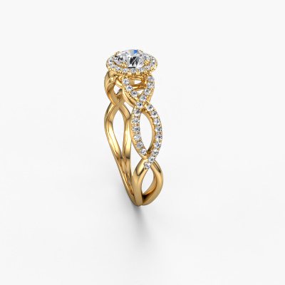 The ring shown above is called the Dionne rnd. We call this type of ring a pavé solitaire ring because it has one center gemstone and a band that is also pave set with gemstones. The 14 Carat gold engagement ring is set with a round 0.40 crt diamond center stone and the band is pave set with diamond gemstones. Each jewel is made just for you by our master goldsmiths in our own studio.This classic gold pavé solitaire engagement ring has an exquisite round diamond center stone. To further accentuate the center stone, the band is fully set with more diamonds. Its open prong setting allows light to strike the diamond from various angles and this adds sparkle to your diamond ring. The photo shown above depicts the goldsmith's carefully handcrafted details of the ring. The high positioning of the center stone is truly eye-catching. The perfect engagement ring for the crown jewel of your life! Because we design and deliver our own rings, we can offer you a engagement ring at a price you won't find anywhere else. A ring is made to order, which helps prevent excess supplies, so we can make you a great price offer. We understand it feels risky, buying your engagement ring online, but we will gladly assist in the designing process, taking your budget into consideration.Do you have a specific ring in mind? One you came across somewhere. Please feel free to tell us your wishes and we will turn your design into a unique engagement ring. You can follow the development of your ring design because we use 3D drawings. This gives you a realistic preview of your design. We will gladly send you a non-binding offer, based on a fair price/ quality ratio. It will amaze you.To make it easier for you, we offer a 30 day return policy. Check our terms and conditions.
