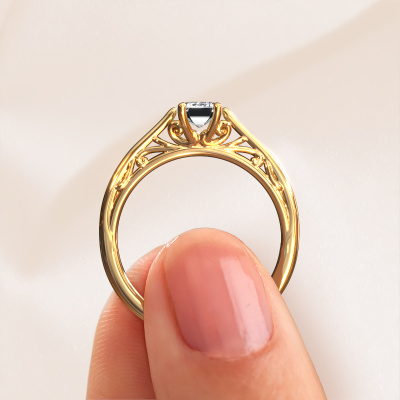 This 14 Carat gold ring is called Shannon eme and is set with diamond. An extraordinary gold vintage ring. One that will surely make the love of your life shine like a diamond! That is what we hope to achieve. This fantasy engagement ring is set with exquisite diamonds. Whichever gemstone you choose from our selection, is up to you. The gemstone is selected with great care because we believe your engagement ring must be adorned with nothing but the most beautiful gemstone. Wouldn't you agree? Our expert goldsmith will design your ring in our own artisan studio, where the diamond will be set with great precision. The ring will then be polished till it is absolutely perfect. Nothing but the best for the love of your life! This jewel is unique in every way! Simply customize to your liking,Are you on a budget? Please feel free to contact us, so we can go discuss your options. We offer our engagement rings at guaranteed best price, because we make them to order. You won't find such a price anywhere else!Our designers and goldsmiths work together each day, creating new jewels. Perhaps you have found a nice fantasy engagement ring somewhere, which can be used to customize your unique ring. Please feel free to contact us. We will make you an offer, based on a fair price/ quality ratio, which will amaze you.To make it easier for you, we offer a 30 day return policy. Check our terms and conditions.