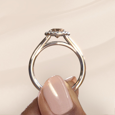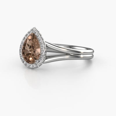 This platinum ring is called Verla pear 1 and is set with 1.147 crt brown diamond. This exclusive platinum halo engagement ring is a true work of art! The ornaments are crafted with a lot of patience and great passion. In order to create this ring with great precision, this craft requires a keen eye and skillful hand. A challenge which ignites a fire in our expert goldsmith. The exquisite brown diamonds are set in a special way so they stand out even more. This gives the ring an even more glamorous appearance. The graceful engagement ring is actually unique on its own because of the gemstones which we carefully select especially for this ring. On top of that you select the precious metals which will be used to create a unique ring for the most extraordinary woman in your life! This jewel is made to shine bright around your finger. Each jewel is hand made with love by our goldsmiths.By using a combination of the latest modern techniques, combined with ancient crafting, we can make all our engagement rings in our own studio. Each jewel is made to order. This is advantageous because we can offer you a price you won't find anywhere else.Have you found a specific engagement ring somewhere which you would like to give to your loved one? Please feel free to express your wishes to our jewel designers because we would be honored to turn your design into a luxury engagement ring. You can follow the development of your ring design because we use 3D drawings. This gives you a realistic preview of how your design will look. You can also preorder a dummy. A dummy is a plastic ring, which can be shaped according your ring design. You can try it on and check if its width and size are suitable for you. We will gladly send you a non-binding offer, based on a fair price/ quality ratio. It will amaze you, considering the quality of the ring and gemstones.To make it easier for you, we offer a 30 day return policy. Check our terms and conditions.