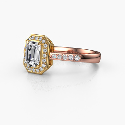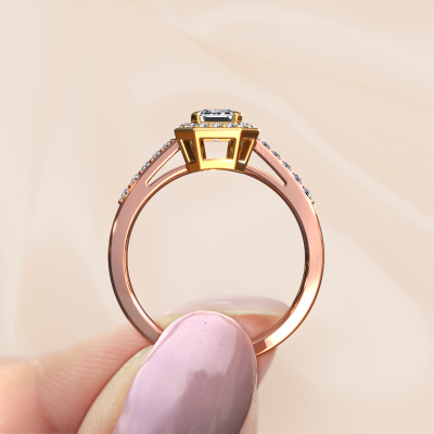 This 14 Carat rose gold ring is called Dodie 2 eme and is set with 1.362 crt lab-grown diamond. This exclusive rose gold halo engagement ring is a true work of art! The ornaments are crafted with a lot of patience and great passion. In order to create this ring with great precision, this craft requires a keen eye and skillful hand. A challenge which ignites a fire in our expert goldsmith. The exquisite lab grown diamonds are set in a special way so they stand out even more. This gives the ring an even more glamorous appearance. The pretty engagement ring is actually unique on its own because of the gemstones which we carefully select especially for this ring. On top of that you select the precious metals which will be used to create a unique ring for the most extraordinary woman in your life! This jewel is made just for you, with attention to detail and design.Because we design and deliver our own rings, we can offer you a engagement ring at a price you won't find anywhere else. A ring is made to order, which helps prevent excess supplies, so we can make you a great price offer. We understand it feels risky, buying your engagement ring online, but we will gladly assist in the designing process, taking your budget into consideration.Do you have a specific ring in mind? One you came across somewhere. Please feel free to tell us your wishes and we will turn your design into a unique engagement ring. You can follow the development of your ring design because we use 3D drawings. This gives you a realistic preview of your design. We will gladly send you a non-binding offer, based on a fair price/ quality ratio. It will amaze you.To make it easier for you, we offer a 30 day return policy. Check our terms and conditions.