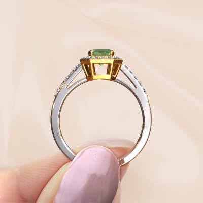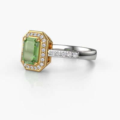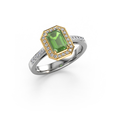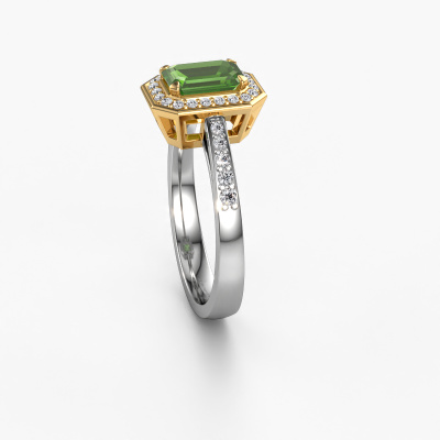 This 14 Carat white gold ring is called Dodie 2 eme and is set with 7x5 mm tourmaline green. This exclusive white gold halo engagement ring is a true work of art! The ornaments are crafted with a lot of patience and great passion. In order to create this ring with great precision, this craft requires a keen eye and skillful hand. A challenge which ignites a fire in our expert goldsmith. The exquisite tourmaline green are set in a special way so they stand out even more. This gives the ring an even more glamorous appearance. The pretty engagement ring is actually unique on its own because of the gemstones which we carefully select especially for this ring. On top of that you select the precious metals which will be used to create a unique ring for the most extraordinary woman in your life! This jewel is made just for you, with attention to detail and design.Because we design and deliver our own rings, we can offer you a engagement ring at a price you won't find anywhere else. A ring is made to order, which helps prevent excess supplies, so we can make you a great price offer. We understand it feels risky, buying your engagement ring online, but we will gladly assist in the designing process, taking your budget into consideration.Do you have a specific ring in mind? One you came across somewhere. Please feel free to tell us your wishes and we will turn your design into a unique engagement ring. You can follow the development of your ring design because we use 3D drawings. This gives you a realistic preview of your design. We will gladly send you a non-binding offer, based on a fair price/ quality ratio. It will amaze you.To make it easier for you, we offer a 30 day return policy. Check our terms and conditions.