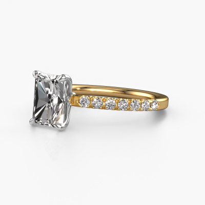 The ring shown above is called the Crystal RAD 2. We call this type of ring a pavé solitaire ring because it has one center gemstone and a band that is also pave set with gemstones. The 14 Carat gold engagement ring is set with a radiant 1.75 crt lab-grown diamond center stone and the band is pave set with lab-grown diamond gemstones. Each jewel is made to shine bright around your finger. Each jewel is hand made with love by our goldsmiths.This luxury gold pavé solitaire engagement ring has an exquisite radiant lab-grown diamond center stone. To further accentuate the center stone, the band is fully set with more lab grown diamonds. Its open prong setting allows light to strike the lab-grown diamond from various angles and this adds sparkle to your lab-grown diamond ring. The photo shown above depicts the goldsmith's carefully handcrafted details of the ring. The high positioning of the center stone is truly eye-catching. The perfect engagement ring for the crown jewel of your life! By using a combination of the latest modern techniques, combined with ancient crafting, we can make all our engagement rings in our own studio. Each jewel is made to order. This is advantageous because we can offer you a price you won't find anywhere else.Our designers and goldsmiths work together each day, creating new jewels. Perhaps you have found a nice luxury engagement ring somewhere, which can be used to customize your unique ring. Please feel free to contact us. We will make you an offer, based on a fair price/ quality ratio, which will amaze you.To make it easier for you, we offer a 30 day return policy. Check our terms and conditions.