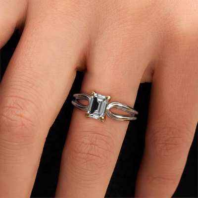 The ring shown above is called the Antonia eme 1, we call this a solitaire ring because it contains a single gemstone. The engagement ring is made in 14 Carat white gold and has a emerald cut lab-grown diamond of 1.15 crt. The cool thing about our configurator is that you can compile your own piece of jewelry, into a completely personalized one. This solitaire ring is crafted in the precious metals white gold with gold, but of course you are free to pick your own colors. Each piece of jewelry is created to add sparkle to your finger, each jewel is lovingly made by hand by our goldsmiths.The solitaire ring is a special type of engagement ring. Its open prong setting allows light to strike the gemstone from various angles. This fantasy engagement ring is a stunning eye-catcher because of the high positioning of the gemstone. In order for you to commemorate your proposal with a unique ring, we carefully adorn this solitaire ring by hand. The love of your life deserves nothing but the best. Because we design and deliver our own rings, we can offer you a engagement ring at a price you won't find anywhere else. A ring is made to order, which helps prevent excess supplies, so we can make you a great price offer. We understand it feels risky, buying your engagement ring online, but we will gladly assist in the designing process, taking your budget into consideration.Our designers and goldsmiths work together each day, creating new jewels. Perhaps you have found a nice fantasy engagement ring somewhere, which can be used to customize your unique ring. Please feel free to contact us. We will make you an offer, based on a fair price/ quality ratio, which will amaze you.To make it easier for you, we offer a 30 day return policy. Check our terms and conditions.