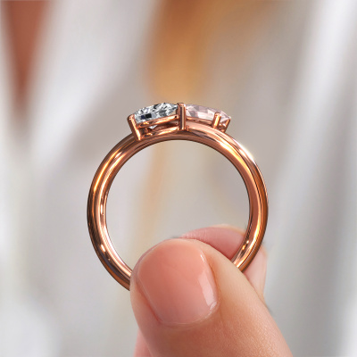 This 14 Carat rose gold ring is called Chloe OVL-PER and is set with morganite champagne. How would you describe the style of the love of your life? Does she have a unique sense of style? This stunning twist rose gold engagement ring can be custom made to your own or her liking. Our morganite champagne gemstones have been carefully selected because we believe your unique engagement ring must be adorned with nothing but the most beautiful gemstone. Don't you agree? This jewel is created to add sparkle to your finger, each jewel is lovingly made by hand by our goldsmiths.Because we design and deliver our own rings, we can offer you a engagement ring at a price you won't find anywhere else. A ring is made to order, which helps prevent excess supplies, so we can make you a great price offer. We understand it feels risky, buying your engagement ring online, but we will gladly assist in the designing process, taking your budget into consideration.Do you have a specific ring in mind? One you came across somewhere. Please feel free to tell us your wishes and we will turn your design into a unique engagement ring. You can follow the development of your ring design because we use 3D drawings. This gives you a realistic preview of your design. We will gladly send you a non-binding offer, based on a fair price/ quality ratio. It will amaze you.To make it easier for you, we offer a 30 day return policy. Check our terms and conditions.