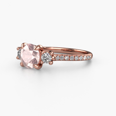 This 14 Carat rose gold ring is called Jesica and is set with 6.8 mm morganite champagne. What is it that makes your relationship unique? What is it about her that makes you want to bend down on one knee? The unique bond between the two of you is emphasized by an equally unique ring. A one of a kind graceful 3-stone engagement ring made especially for her. That is why this classic ring fits her like a glove. Each specific detail of this graceful rose gold morganite champagne set engagement ring is hand-picked, crafted and polished by our expert goldsmith. The result is an exquisite ring, unique and perfectly crafted to perfection. That is what our expert Goldsmiths strive for. This jewel is made just for you, with attention to detail and design.After receiving your order, our goldsmiths will passionately start the creative process of making your engagement ring in our own studio. Because we don't have a big stockpile, these costs will not be passed on to you. Our pricing is proof of that! We offer top quality jewels at lowest price, guaranteed.Different styles of new rings are made daily by our team. Perhaps you have found a 3-stone engagement ring somewhere. One you would like to give to your loved one. Please feel free to share your thoughts and design with our jewel designers. We would love to turn your design into a classic engagement ring. You can follow the development of your ring design because we use very detailed 3D drawings. On top of that, you can order a dummy of the design. A dummy is a plastic ring, which can be shaped according your ring design. You can try it on and check if the engagement ring is up to standard. We will gladly send you a non-binding offer, based on a fair price/ quality ratio. The offer will baffle you, considering the quality of the ring and gemstones.To make it easier for you, we offer a 30 day return policy. Check our terms and conditions.