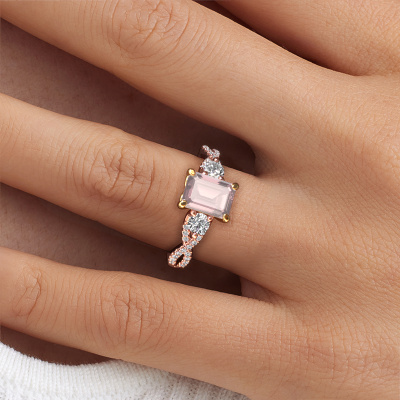 This 14 Carat rose gold ring is called Marilou EME and is set with morganite champagne. How would you describe the style of the love of your life? Does she have a unique sense of style? This stunning split band rose gold engagement ring can be custom made to your own or her liking. Our morganite champagne gemstones have been carefully selected because we believe your luxury engagement ring must be adorned with nothing but the most beautiful gemstone. Don't you agree? This jewel is made to shine bright around your finger. Each jewel is hand made with love by our goldsmiths.After receiving your order, our goldsmiths will start the creative process of making your Marilou EME engagement ring. We don't keep stock. This is advantageous because these costs will not be passed on to you. Therefore, we can offer jewelry at exceptionally low prices.Do you have a specific ring in mind? One you came across somewhere. Please feel free to tell us your wishes and we will turn your design into a unique engagement ring. You can follow the development of your ring design because we use 3D drawings. This gives you a realistic preview of your design. We will gladly send you a non-binding offer, based on a fair price/ quality ratio. It will amaze you.To make it easier for you, we offer a 30 day return policy. Check our terms and conditions.