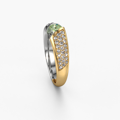 The ring shown above is called Hojalien 3. We call this a pave ring. The smaller gemstones of pave ring are set in a close row which gives it an extra shine. This 14 Carat white gold ring is set with green lab grown diamondd 4.2 mm. The ring shown above is called Hojalien 3. We call this a pave ring. The smaller gemstones of pave ring are set in a close row which gives it an extra shine. Which emotion would you like to convey when you get down on one knee for her? This white gold engagement ring is pave set with stunning green lab grown diamondd to represent your everlasting love. The gemstones are carefully hand selected and set by our goldsmith. The unique reflection of light on the ring can only be captured if the green lab grown diamondd are set in a perfect line. During the crafting and polishing of the jewelry, light fall is constantly monitored, until the expert goldsmith is satisfied with the result. A ring designed just for you to make your loved one shine bright like a diamond. Because there is only one special person fit to wear such a unique ring! With this meaningful piece of art, the symbol of infinity, you will prove your undying love for her and that you want to share the rest of your life with no one else. How will she be able to resist? This piece of jewelry is made to shine bright around your finger. Each jewel is hand made with love by our goldsmiths.