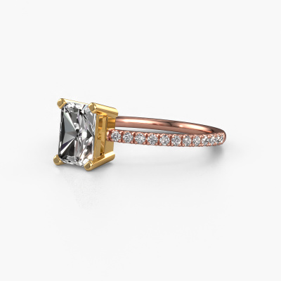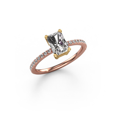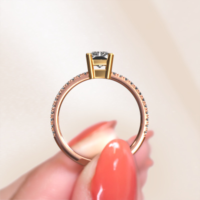 This 14 Carat rose gold ring is called Denita 2 RAD and is set with 1.18 crt diamond. This exclusive rose gold pavé solitaire engagement ring is a true work of art! The ornaments are crafted with a lot of patience and great passion. In order to create this ring with great precision, this craft requires a keen eye and skillful hand. A challenge which ignites a fire in our expert goldsmith. The exquisite diamonds are set in a special way so they stand out even more. This gives the ring an even more glamorous appearance. The micro pave engagement ring is actually unique on its own because of the gemstones which we carefully select especially for this ring. On top of that you select the precious metals which will be used to create a unique ring for the most extraordinary woman in your life! This jewel is made with passion and love by one of our master goldsmiths.After receiving your order, our goldsmiths will passionately start the creative process of making your engagement ring in our own studio. Because we don't have a big stockpile, these costs will not be passed on to you. Our pricing is proof of that! We offer top quality jewels at lowest price, guaranteed.Do you have a specific ring in mind? One you came across somewhere. Please feel free to tell us your wishes and we will turn your design into a unique engagement ring. You can follow the development of your ring design because we use 3D drawings. This gives you a realistic preview of your design. We will gladly send you a non-binding offer, based on a fair price/ quality ratio. It will amaze you.To make it easier for you, we offer a 30 day return policy. Check our terms and conditions.