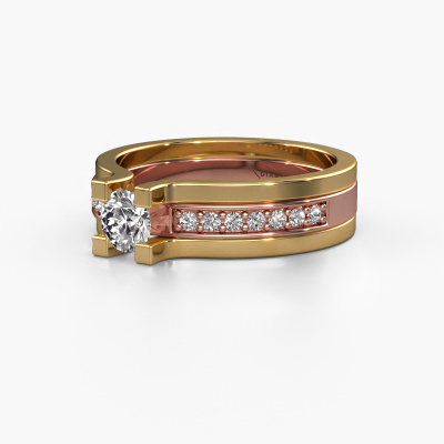 This 14 Carat rose gold ring is called Myrthe and is set with 0.568 crt diamond. This exclusive rose gold pavé solitaire engagement ring is a true work of art! The ornaments are crafted with a lot of patience and great passion. In order to create this ring with great precision, this craft requires a keen eye and skillful hand. A challenge which ignites a fire in our expert goldsmith. The exquisite diamonds are set in a special way so they stand out even more. This gives the ring an even more glamorous appearance. The graceful engagement ring is actually unique on its own because of the gemstones which we carefully select especially for this ring. On top of that you select the precious metals which will be used to create a unique ring for the most extraordinary woman in your life! This jewel is made just for you, with attention to detail and design.After receiving your order, our goldsmiths will start the creative process of making your Myrthe engagement ring. We don't keep stock. This is advantageous because these costs will not be passed on to you. Therefore, we can offer jewelry at exceptionally low prices.Our designers and goldsmiths work together each day, creating new jewels. Perhaps you have found a nice modern engagement ring somewhere, which can be used to customize your unique ring. Please feel free to contact us. We will make you an offer, based on a fair price/ quality ratio, which will amaze you.To make it easier for you, we offer a 30 day return policy. Check our terms and conditions.