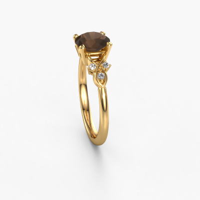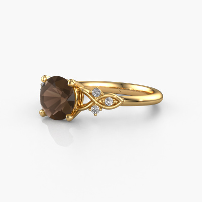 This 14 Carat gold ring is called Azra RND and is set with smokey quartz. Do you keep up with the latest fashion trends? Do you want a unique engagement ring that matches your lifestyle? This tasteful engagement ring is an extraordinary ring which can be custom made to fit your or her personal style. This fantasy gold engagement ring is set with smokey quartz. Our smokey quartz are carefully selected for this specific ring in order to create the best effect. Our expert goldsmith will create your ring in our own artisan studio where the smokey quartz will be set with great care. The ring will then be polished to perfection. Nothing but the best for the love of your life! This jewel is made with passion and love by one of our master goldsmiths.By using our modern techniques, we can design and customize the finest quality jewels with the utmost care for you. Our engagement rings are always priced 30 percent lower than other jewelers. We make engagement rings to order so we don't have to maintain a large stock. If you have a certain budget, we are more than happy to advice you accordingly.Different styles of new rings are made daily by our team. Perhaps you have found a pavé solitaire engagement ring somewhere. One you would like to give to your loved one. Please feel free to share your thoughts and design with our jewel designers. We would love to turn your design into a fantasy engagement ring. You can follow the development of your ring design because we use very detailed 3D drawings. On top of that, you can order a dummy of the design. A dummy is a plastic ring, which can be shaped according your ring design. You can try it on and check if the engagement ring is up to standard. We will gladly send you a non-binding offer, based on a fair price/ quality ratio. The offer will baffle you, considering the quality of the ring and gemstones.To make it easier for you, we offer a 30 day return policy. Check our terms and conditions.