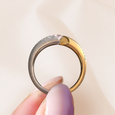 This 14 Carat white gold ring is called Hojalien 2 and is set with morganite champagne. Do you keep up with the latest fashion trends? Do you want a unique engagement ring that matches your lifestyle? This graceful engagement ring is an extraordinary ring which can be custom made to fit your or her personal style. This modern white gold engagement ring is set with morganite champagne. Our morganite champagne are carefully selected for this specific ring in order to create the best effect. Our expert goldsmith will create your ring in our own artisan studio where the morganite champagne will be set with great care. The ring will then be polished to perfection. Nothing but the best for the love of your life! This jewel is made by a team of passionate goldsmiths and jewel designers. This will make your crown jewel truly eye-catching.Because we design and deliver our own rings, we can offer you a engagement ring at a price you won't find anywhere else. A ring is made to order, which helps prevent excess supplies, so we can make you a great price offer. We understand it feels risky, buying your engagement ring online, but we will gladly assist in the designing process, taking your budget into consideration.Our team adds new designs to our online collection daily. Our designers and goldsmiths work together in creating the best design. We strive to offer a diverse collection of jewels. Perhaps you have a specific jewel design in mind. One you came across somewhere. Please contact us for a free consultation. We will make you an offer, based on a fair price/ quality ratio, that will baffle you.To make it easier for you, we offer a 30 day return policy. Check our terms and conditions.