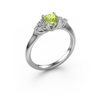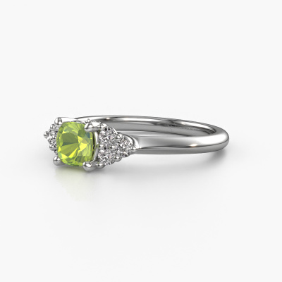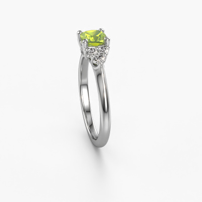 This platinum ring is called Felipa CUS and is set with peridot. How would you describe the style of the love of your life? Does she have a unique sense of style? This stunning graceful platinum engagement ring can be custom made to your own or her liking. Our peridot gemstones have been carefully selected because we believe your vintage engagement ring must be adorned with nothing but the most beautiful gemstone. Don't you agree? This jewel is made just for you by our master goldsmiths in our own studio.By using our modern techniques, we can design and customize the finest quality jewels with the utmost care for you. Our engagement rings are always priced 30 percent lower than other jewelers. We make engagement rings to order so we don't have to maintain a large stock. If you have a certain budget, we are more than happy to advice you accordingly.Have you found a specific engagement ring somewhere which you would like to give to your loved one? Please feel free to express your wishes to our jewel designers because we would be honored to turn your design into a vintage engagement ring. You can follow the development of your ring design because we use 3D drawings. This gives you a realistic preview of how your design will look. You can also preorder a dummy. A dummy is a plastic ring, which can be shaped according your ring design. You can try it on and check if its width and size are suitable for you. We will gladly send you a non-binding offer, based on a fair price/ quality ratio. It will amaze you, considering the quality of the ring and gemstones.To make it easier for you, we offer a 30 day return policy. Check our terms and conditions.