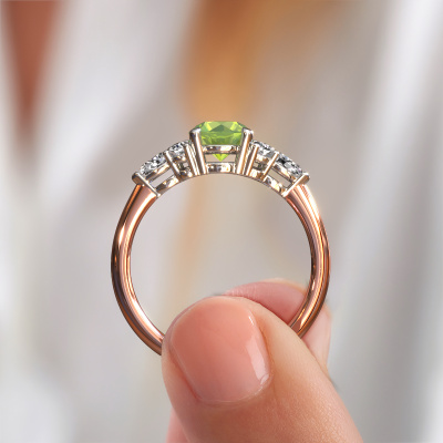 This 14 Carat rose gold ring is called Melani RND and is set with peridot. How would you describe the style of the love of your life? Does she have a unique sense of style? This stunning charming rose gold engagement ring can be custom made to your own or her liking. Our peridot gemstones have been carefully selected because we believe your contemporary engagement ring must be adorned with nothing but the most beautiful gemstone. Don't you agree? This jewel is made just for you by our master goldsmiths in our own studio.Because we design and deliver our own rings, we can offer you a engagement ring at a price you won't find anywhere else. A ring is made to order, which helps prevent excess supplies, so we can make you a great price offer. We understand it feels risky, buying your engagement ring online, but we will gladly assist in the designing process, taking your budget into consideration.Our team adds new designs to our online collection daily. Our designers and goldsmiths work together in creating the best design. We strive to offer a diverse collection of jewels. Perhaps you have a specific jewel design in mind. One you came across somewhere. Please contact us for a free consultation. We will make you an offer, based on a fair price/ quality ratio, that will baffle you.To make it easier for you, we offer a 30 day return policy. Check our terms and conditions.