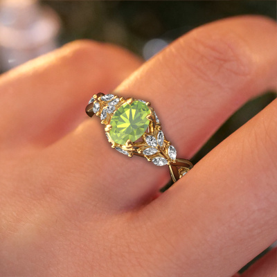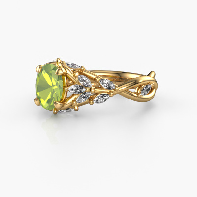 This 14 Carat gold ring is called Samantha OVL and is set with 7,5x5,5 mm peridot. What is it that makes your relationship unique? What is it about her that makes you want to bend down on one knee? The unique bond between the two of you is emphasized by an equally unique ring. A one of a kind special pavé solitaire engagement ring made especially for her. That is why this unique ring fits her like a glove. Each specific detail of this special gold peridot set engagement ring is hand-picked, crafted and polished by our expert goldsmith. The result is an exquisite ring, unique and perfectly crafted to perfection. That is what our expert Goldsmiths strive for. This jewel is made just for you by our master goldsmiths in our own studio.After receiving your order, our goldsmiths will passionately start the creative process of making your engagement ring in our own studio. Because we don't have a big stockpile, these costs will not be passed on to you. Our pricing is proof of that! We offer top quality jewels at lowest price, guaranteed.Our team adds new designs to our online collection daily. Our designers and goldsmiths work together in creating the best design. We strive to offer a diverse collection of jewels. Perhaps you have a specific jewel design in mind. One you came across somewhere. Please contact us for a free consultation. We will make you an offer, based on a fair price/ quality ratio, that will baffle you.To make it easier for you, we offer a 30 day return policy. Check our terms and conditions.
