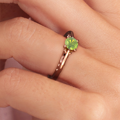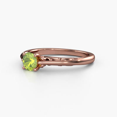 This 14 Carat rose gold ring is called Shannon rnd and is set with peridot. How would you describe the style of the love of your life? Does she have a unique sense of style? This stunning ajour rose gold engagement ring can be custom made to your own or her liking. Our peridot gemstones have been carefully selected because we believe your fantasy engagement ring must be adorned with nothing but the most beautiful gemstone. Don't you agree? This jewel is made with passion and love by one of our master goldsmiths.By using a combination of the latest modern techniques, combined with ancient crafting, we can make all our engagement rings in our own studio. Each jewel is made to order. This is advantageous because we can offer you a price you won't find anywhere else.Do you have a specific ring in mind? One you came across somewhere. Please feel free to tell us your wishes and we will turn your design into a unique engagement ring. You can follow the development of your ring design because we use 3D drawings. This gives you a realistic preview of your design. We will gladly send you a non-binding offer, based on a fair price/ quality ratio. It will amaze you.To make it easier for you, we offer a 30 day return policy. Check our terms and conditions.