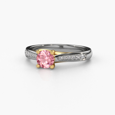 The ring shown above is called the Mia 2. We call this type of ring a pavé solitaire ring because it has one center gemstone and a band that is also pave set with gemstones. This engagement ring is made in 14 Carat white gold set with a 5 mm round pink lab grown diamond, and pave set lab grown diamonds at the sides. Each piece of jewelry is made just for you, with attention to detail and design.This modern white gold pavé solitaire engagement ring has an exquisite round pink lab grown diamond center stone. To further accentuate the center stone, the band is set full with more lab grown diamonds. Its open prong setting allows light to strike the pink lab grown diamond from various angles and this adds sparkle to your pink lab grown diamond ring. The photo shown above depicts the goldsmith's carefully handcrafted details of the ring. The high positioning of the center stone is truly eye-catching. The perfect engagement ring for the crown jewel of your life!By using our modern techniques, we can design and customize the finest quality jewels with the utmost care for you. Our engagement rings are always priced 30 percent lower than other jewelers. We make engagement rings to order so we don't have to maintain a large stock. If you have a certain budget, we are more than happy to advice you accordingly.Different styles of new rings are made daily by our team. Perhaps you have found a pavé solitaire engagement ring somewhere. One you would like to give to your loved one. Please feel free to share your thoughts and design with our jewel designers. We would love to turn your design into a modern engagement ring. You can follow the development of your ring design because we use very detailed 3D drawings. On top of that, you can order a dummy of the design. A dummy is a plastic ring, which can be shaped according your ring design. You can try it on and check if the engagement ring is up to standard. We will gladly send you a non-binding offer, based on a fair price/ quality ratio. The offer will baffle you, considering the quality of the ring and gemstones.To make it easier for you, we offer a 30 day return policy. Check our terms and conditions.