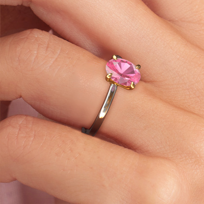 The ring shown above is called the Crystal OVL 1, we call this a solitaire ring because it contains a single gemstone. The engagement ring is made in 14 Carat white gold and has a oval pink sapphire of 8x6 mm. The cool thing about our configurator is that you can compile your own piece of jewelry, into a completely personalized one. This solitaire ring is crafted in the precious metals white gold with gold, but of course you are free to pick your own colors. Each piece of jewelry is created to add sparkle to your finger, each jewel is lovingly made by hand by our goldsmiths.The solitaire ring is a special type of engagement ring. Its open prong setting allows light to strike the gemstone from various angles. This classic engagement ring is a stunning eye-catcher because of the high positioning of the gemstone. In order for you to commemorate your proposal with a unique ring, we carefully adorn this solitaire ring by hand. The love of your life deserves nothing but the best. Because we design and deliver our own rings, we can offer you a engagement ring at a price you won't find anywhere else. A ring is made to order, which helps prevent excess supplies, so we can make you a great price offer. We understand it feels risky, buying your engagement ring online, but we will gladly assist in the designing process, taking your budget into consideration.Our team adds new designs to our online collection daily. Our designers and goldsmiths work together in creating the best design. We strive to offer a diverse collection of jewels. Perhaps you have a specific jewel design in mind. One you came across somewhere. Please contact us for a free consultation. We will make you an offer, based on a fair price/ quality ratio, that will baffle you.To make it easier for you, we offer a 30 day return policy. Check our terms and conditions.