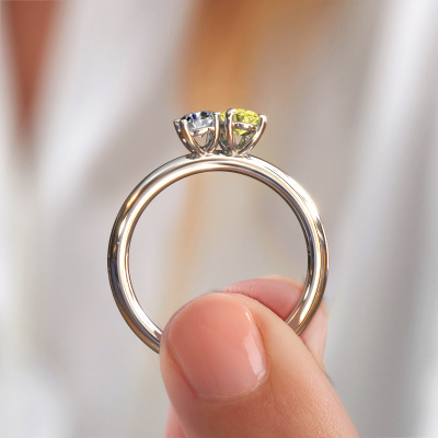 This platinum ring is called Toi et Moi OVL-RND and is set with yellow lab grown diamond. Are you in the market for a unique platinum engagement ring with a trendy appearance? Then this ring is perfect for you. Simply customize to your or her liking. This chic graceful engagement ring is set with exquisite yellow lab grown diamond. It has been carefully selected because your engagement ring must be adorned with nothing but the most beautiful gemstone. Our expert goldsmith will create your ring in our own studio where the yellow lab grown diamond will be set with great care. The ring will then be polished to perfection to give it that extra sparkle. The perfect ring for your significant other! Are you on a budget? Please feel free to contact us, so we can go discuss your options. We offer our engagement rings at guaranteed best price, because we make them to order. You won't find such a price anywhere else!Have you found a specific engagement ring somewhere which you would like to give to your loved one? Please feel free to express your wishes to our jewel designers because we would be honored to turn your design into a chic engagement ring. You can follow the development of your ring design because we use 3D drawings. This gives you a realistic preview of how your design will look. You can also preorder a dummy. A dummy is a plastic ring, which can be shaped according your ring design. You can try it on and check if its width and size are suitable for you. We will gladly send you a non-binding offer, based on a fair price/ quality ratio. It will amaze you, considering the quality of the ring and gemstones.To make it easier for you, we offer a 30 day return policy. Check our terms and conditions.