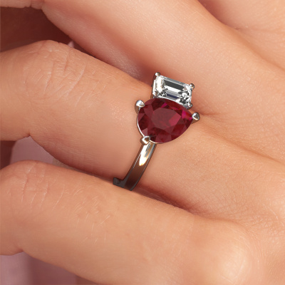 This platinum ring is called Toi et Moi PER-EME and is set with ruby. Are you in the market for a unique platinum engagement ring with a trendy appearance? Then this ring is perfect for you. Simply customize to your or her liking. This chic sparkling engagement ring is set with exquisite ruby. It has been carefully selected because your engagement ring must be adorned with nothing but the most beautiful gemstone. Our expert goldsmith will create your ring in our own studio where the ruby will be set with great care. The ring will then be polished to perfection to give it that extra sparkle. The perfect ring for your significant other! By using a combination of the latest modern techniques, combined with ancient crafting, we can make all our engagement rings in our own studio. Each jewel is made to order. This is advantageous because we can offer you a price you won't find anywhere else.Our team adds new designs to our online collection daily. Our designers and goldsmiths work together in creating the best design. We strive to offer a diverse collection of jewels. Perhaps you have a specific jewel design in mind. One you came across somewhere. Please contact us for a free consultation. We will make you an offer, based on a fair price/ quality ratio, that will baffle you.To make it easier for you, we offer a 30 day return policy. Check our terms and conditions.